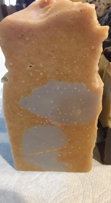 Two new soaps, in addition to the other two (or three?) new soaps that will soon be listed on The Scented djinn Etsy are Iapetus and Amalthea. I felt slightly rushed while making them, so they aren't perfect looking, but they both smell pretty amazing. Amalthea is scented with patchouli (no brainer there), spike lavender and cananga and colored with turmeric powder and alkanet root infusion.